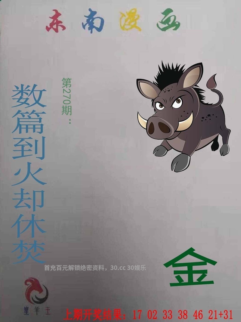 269期八肖 | 羊鸡虎马兔龙猪狗 | 开:猪31 |